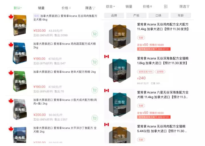 其实究其原因,还是因为国产粮品牌商会入驻平台,保真;而进口粮在进入国内后,会优先供给各个大平台的海外旗舰店,货源较充足。因此,不是客户选择平台,而是平台选择了客户。