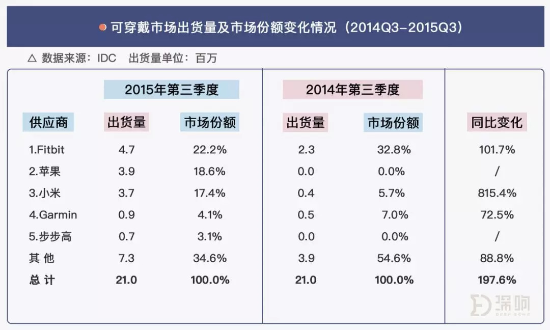 发布后的第一个季度,步步高便凭借小天才手表70万台的出货量,跻身2015年Q3全球可穿戴设备市场份额第五名——一年前,它的份额还是0。