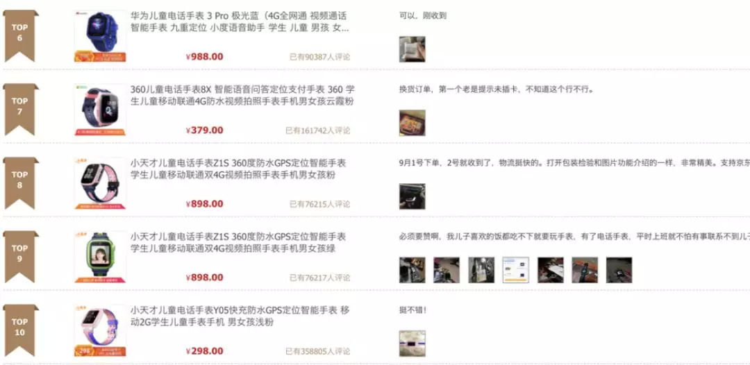 这样的势头一直维持至今,根据京东提供的儿童手表市场分析排行榜,前十名中,小天才产品占据七席,前三名全部是小天才的产品。后来者已经居上。