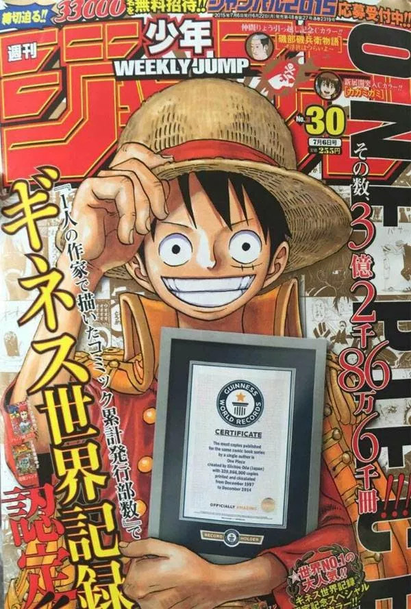 《海贼王》被吉尼斯世界记录官认定为“世界发行量最高的单一作者原创的系列漫画”