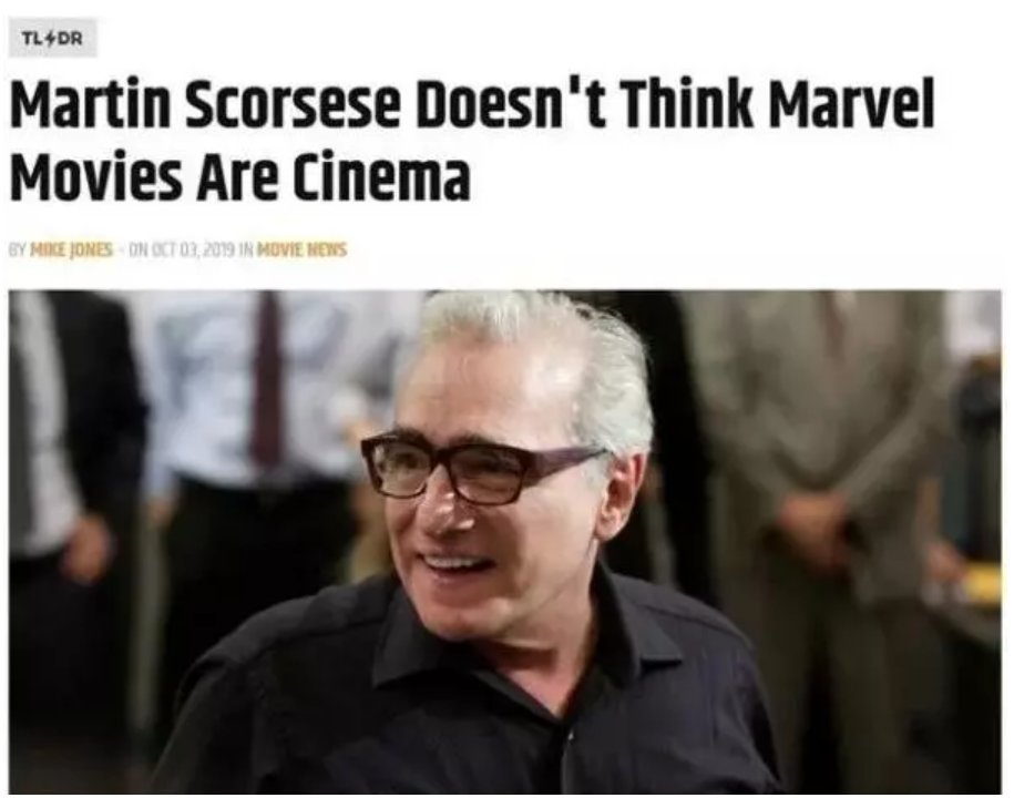 首先正方选手马丁·斯科塞斯,10月4日消息,马丁·斯科塞斯近日接受《帝国》采访,谈及到漫威影片(Marvel Films)时,马丁·斯科塞斯言辞激烈的批判漫威影片并非电影(cinema)。(马丁·斯科塞斯所用“cinema”即是“电影艺术”的意思。)