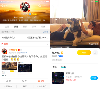 猫又yo在与知名游戏主播的直播联动活动中脱颖而出,被比心陪练平台推荐给了合作的顶级MCN经纪公司,开始尝试从游戏陪练向网红的职业晋升。“猫又yo”的抖音账号在2017年11月刚开通一个半月便涨粉300万,一举冲进抖音游戏榜前十。