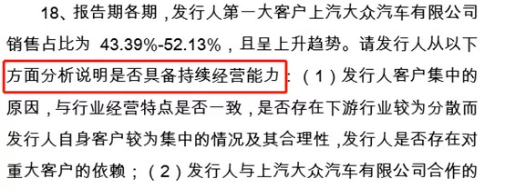 监管部门在对公司首次公开发行股票申请文件(申报稿,2018.12.19送报)反馈意见中,也关注了公司的客户集中问题,并要求公司分析说明是否具备持续经营能力。
