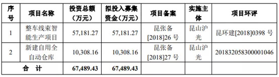 昆山沪光(昆山沪光汽车电器股份有限公司)近期进行了预披露更新。公司拟发行不超过4010万股,募资6.75亿元,用于整车线束智能生产项目和新建自用全自动仓库。