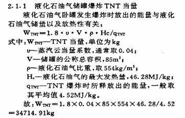 界面新闻记者查阅相关资料发现,根据2011年发表于《内蒙古石油化工》的一篇名为《液化石油气储罐的危险性定量模拟及事故预防》的文献资料,液化石油气储罐爆炸所释放出的TNT当量可以计算,如下图: