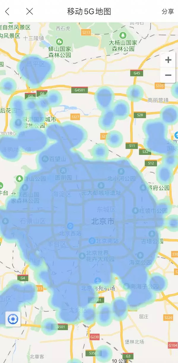 北京周边5G网络覆盖情况 图片来源:百度地图APP
