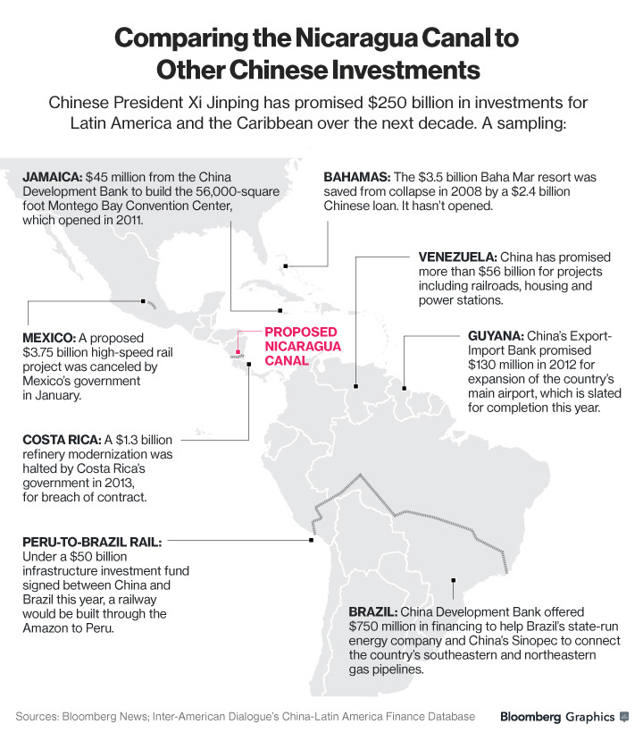 尼加拉瓜官员称,这个小镇的是该地区有史以来最大基础设施建设项目的关键节点。这一项目是指一条投资达500亿美元、长约170英里(约合273.59千米)的运河,将连接尼加拉瓜的东海岸和西海岸。两年前,尼加拉瓜总统丹尼尔·奥特加(Daniel Ortega)授予一名名为王靖的中国商人特权,允许其在必要的情况下将El Tule小镇从地图上抹去,为运河建设让路。这条运河将与尼加拉瓜湖成为一体,并流入数英里开外的太平洋。
