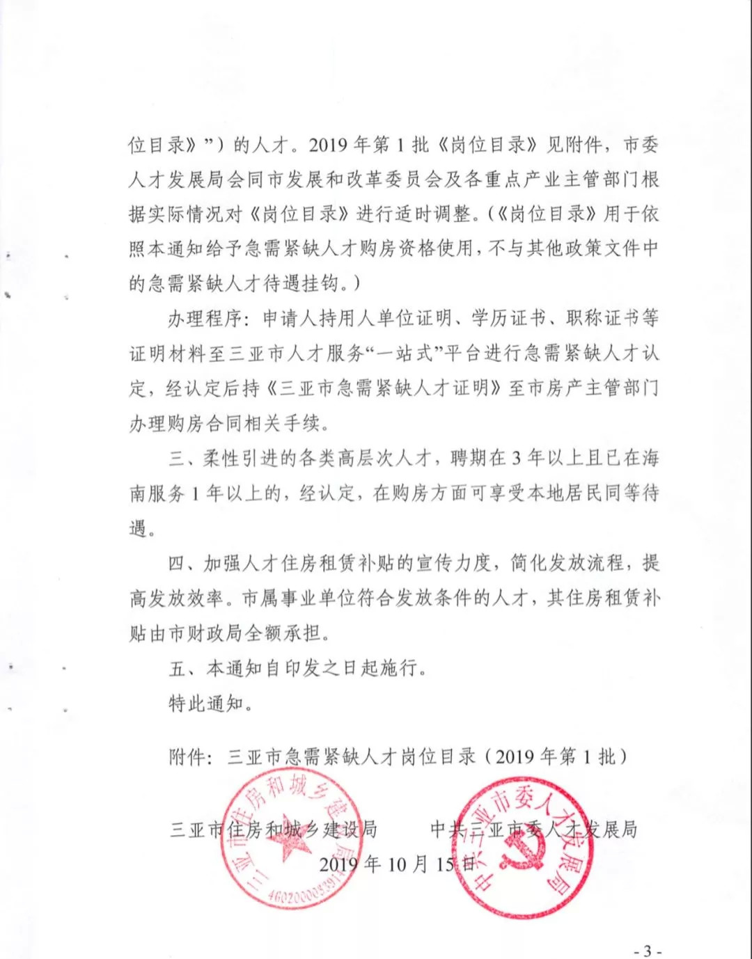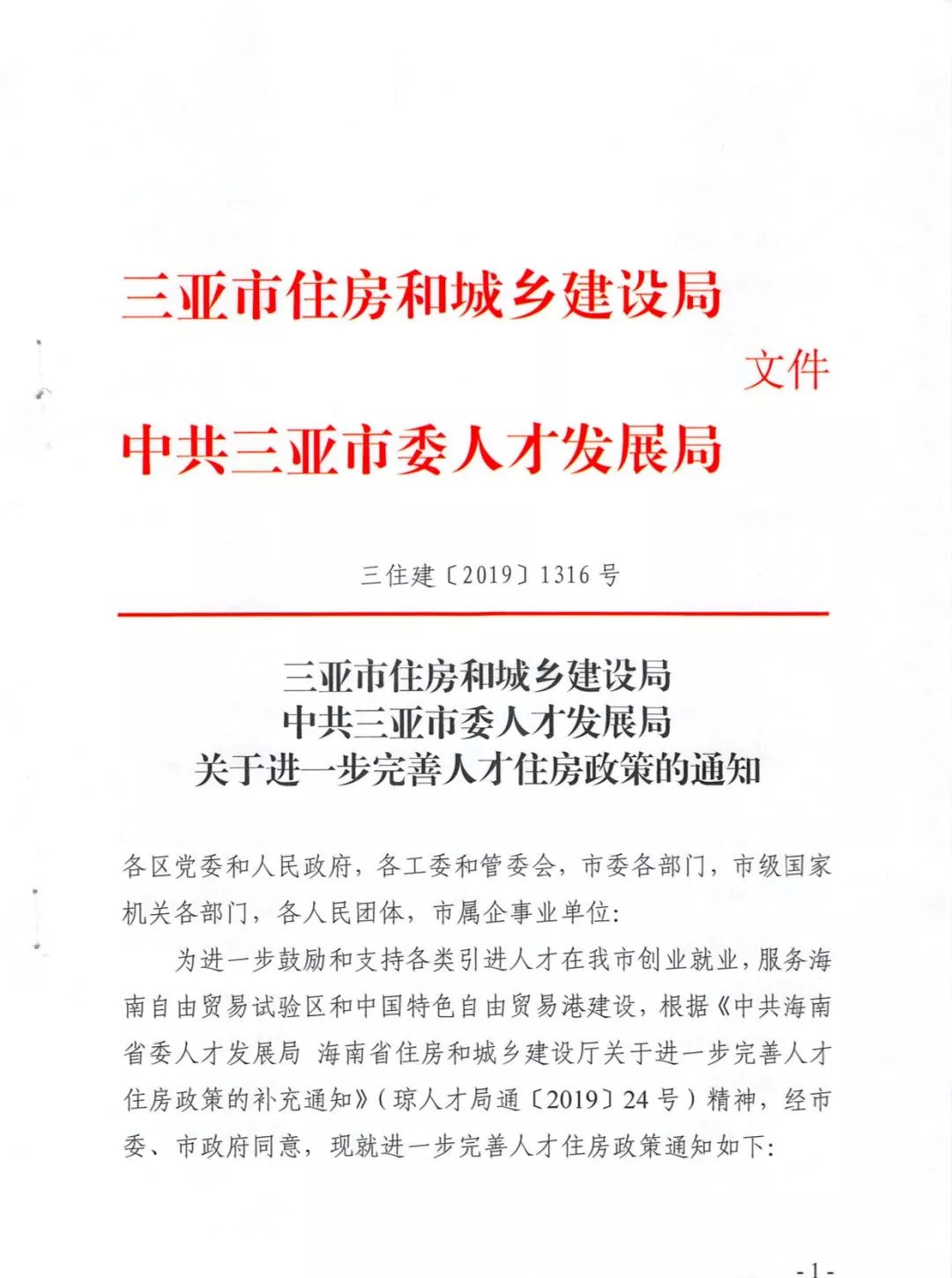 早在10月15日,三亚市住房和城乡建设局和中共三亚市委人才发展局就发布了《关于进一步完善人才住房政策的通知》。