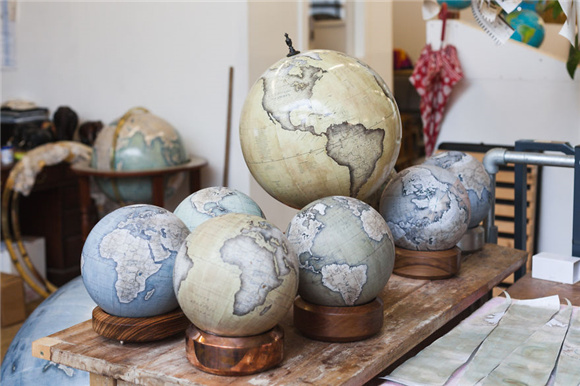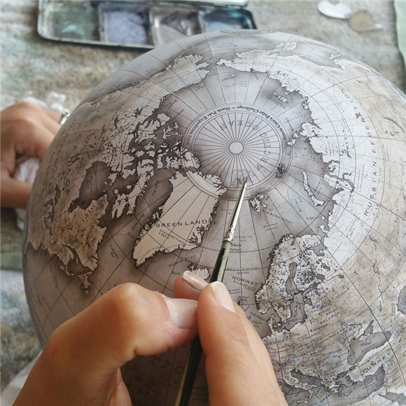 为了让地球仪有复古典雅的美,他们不会打印颜色,而是选择一层一层地用手工涂上。