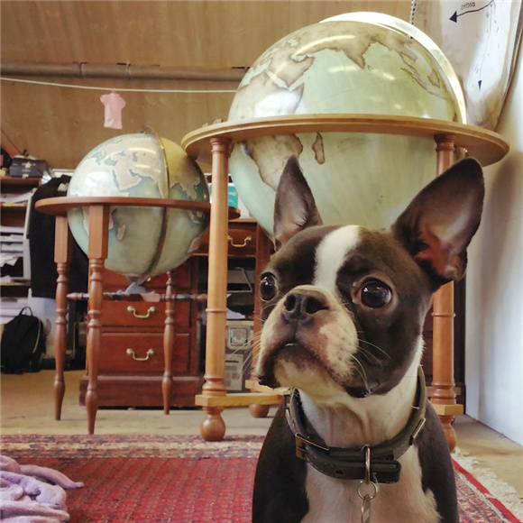 他们的工作室里还有一只叫George的小狗,每天围着这些地球转。