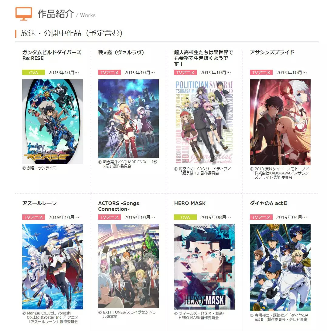 创通是一家动画企划公司,一般每个季度会制作5到7部动画作品,一年下来就会有不少IP的产出。创通企划、出资制作的作品大多像《摇曳百合》、《苍蓝钢铁战舰 –ARS NOVA–》、《潜行吧!奈亚子》、《寒蝉鸣泣之时》等深夜动画片。