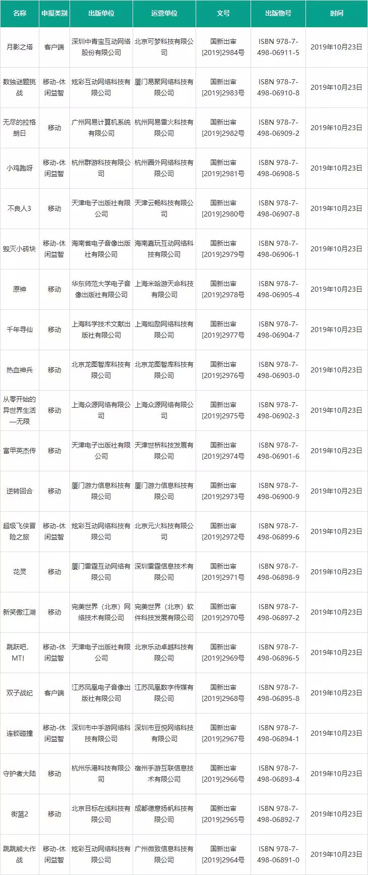 若以运营单位计算,本批次21家运营单位均获得1个版号,新增的运营单位有6家。