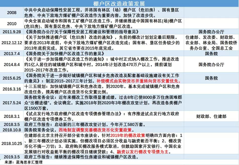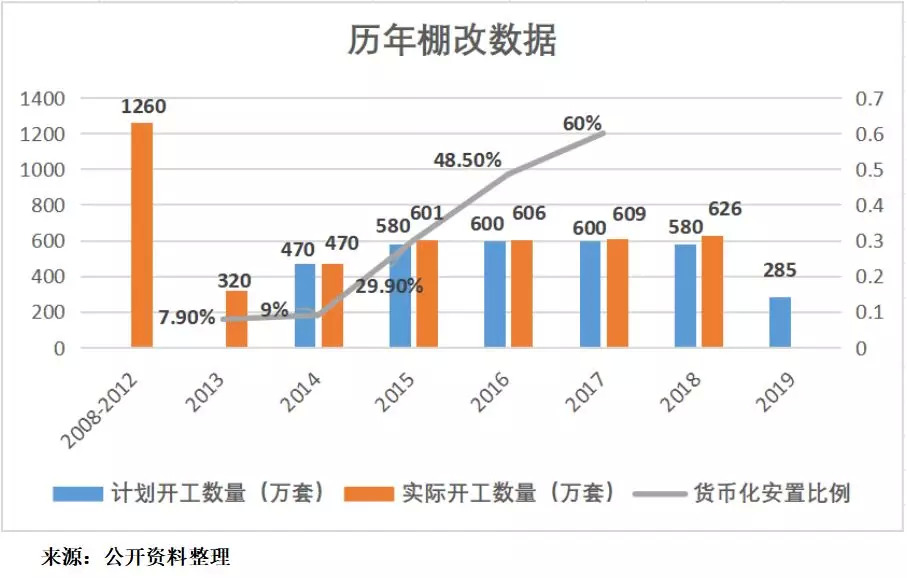 十三五规划明确提出,到2020年,基本完成现有的城镇棚户区、城中村和危房改造,此后中央的几次讲话也重申了这一点。