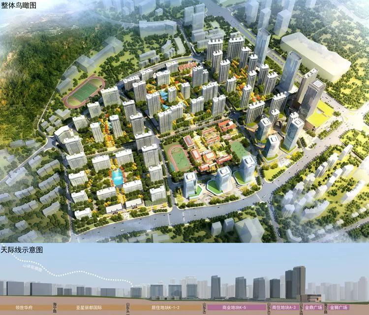 从规划上来看,整个地块东北方向为拆迁安置区;东南方向主要为商业、酒店以及写字楼;地块中心位置规划了两所幼儿园以及一所九年一贯制小学,一期、二期、三期则为住宅区域。