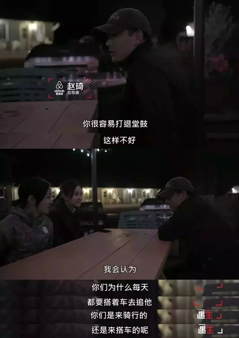 “你很容易打退堂鼓,我现在发现,这样不好……我会认为,你们为什么每天都要搭着车去追他(老徐),你们是来骑行的,还是来搭车的呢?”