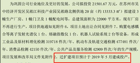 而据信测标准该募投项目的环评文件显示,该项目预期投产日期为2019年5月。