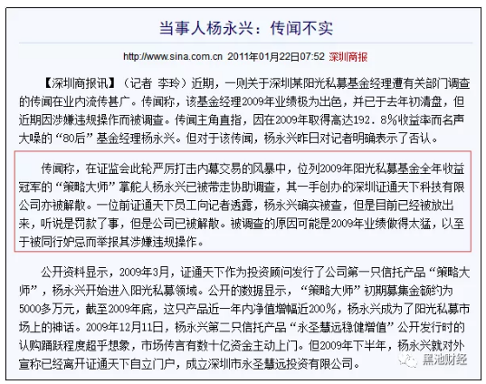两个月后,王先生的真实姓名被媒体曝出,其真实身份竟然是十年前在股市名噪一时的短线交易奇才杨永兴。2011年杨永兴卷入被证监会调查传闻后,就一直销声匿迹,没想到最后以此种身份再次出现在公众面前。