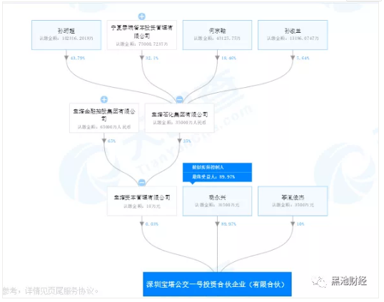除了在币圈布局投资,杨永兴还与宁夏首富、宝塔石化董事长孙珩超发起成立了深圳宝塔公交一号投资合伙企业(有限合伙),天眼查显示,杨永兴持股89.97%,而执行事务合伙人为宝塔资本管理有限公司。