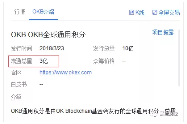 OKB是OKEx 2018年3月发行的平台币,总发行约10亿个,10%出售给机构;50%逐年免费派发给用户;10%用作基金会运营;10%早期股东购买;20%团队持有。据目前OKEx平台公布的信息显示,目前OKB的流通量为3亿个。