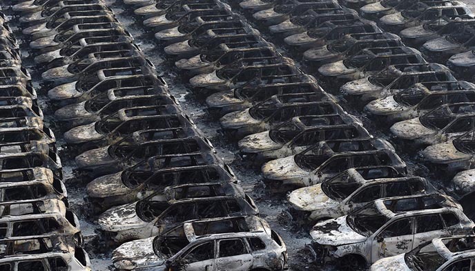 天津港“8·12”特大爆炸事故令人揪心,已经致100多人遇难,财产损失估计达百亿。有未经确认的消息称,天津港进口大众估计烧毁2748辆,雷诺1000多辆,现代保险4000辆车全损,大地1个车库,损失17亿,苏黎世一个车库,损失22个亿。
