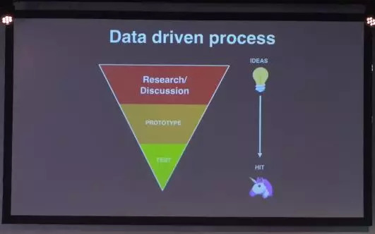 在具体流程方面,我们会花费三分之一的时间在讨论这一环节上,探索某个游戏的想法是否切实可行,最后再搭建游戏原型并进行市场测试。