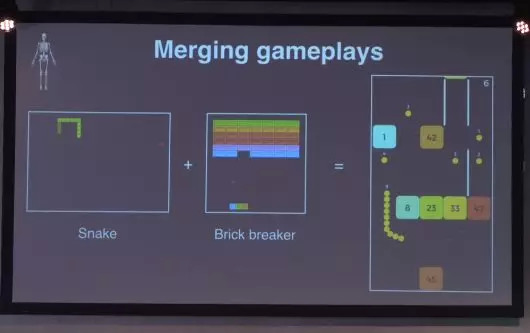 《贪吃蛇遇上打方块》这一全球热门游戏,便是由《贪吃蛇》和《打砖块》二者结合而成。