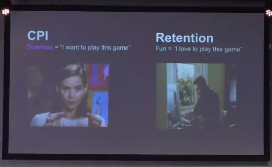 其中CPI意味着用户是否有兴趣去玩这个游戏。我们会在YouTube还有脸书两个平台上浏览大量的动图以及视频,从而发掘玩家的兴趣点,并把这些元素与游戏相融合。
