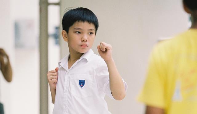 我没记错的话,之前的那版其实是游泳队,后来选择用许家乐之后,才变成了武术学生。因为《爸妈不在家》我发现他的时候,他就在舞台上表演武术。当时我就觉得这个人好有自信,而且有气场。但是这几年他已经没有练武了,所以我就找他之前的教练,他教练刚好也是训练国家队的。所以我就跟教练说,一定要把他训练成可以拿金牌的水准。