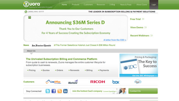 上榜理由:一家来自加州的初创企业,他们向企业销售商务软件,并且帮助企业管理软件订用营收,其模式是通过云计算提供定价、计量、计费服务。随着新一轮融资完成,估值也随之达到了10亿美元。