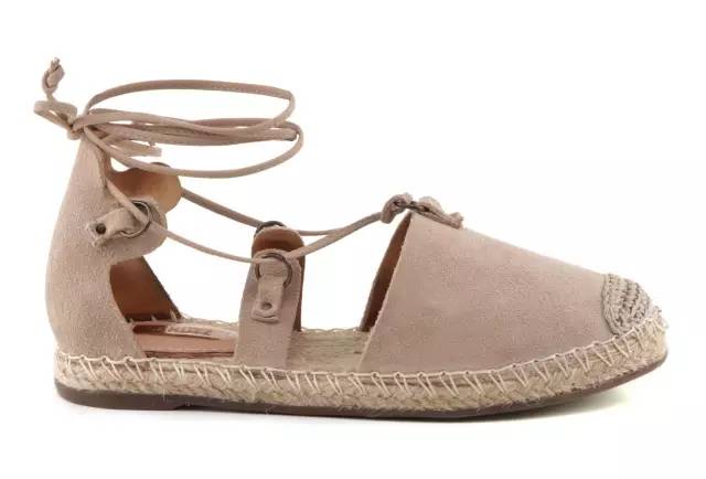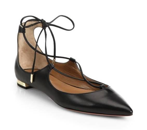 Aquazzura家还出平底绑带鞋,适合穿不惯高跟鞋的女生,以下这款是时尚博主的最爱,几乎所有当红的时尚博主都穿过。