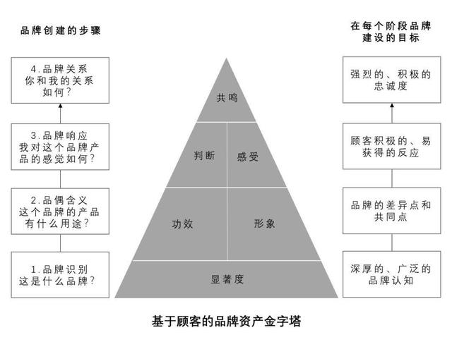 直播带货为何能够实现品效合一呢?来自《战略品牌管理》一书中有一幅名为“基于顾客的品牌资产金字塔”的图片,或许能很好诠释它。