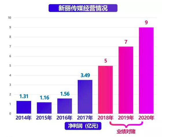 作为影视行业的“老兵”,新丽传媒曾三次“大战”IPO,但最终还是以155亿元的“身价”投入阅文集团的怀抱。在这场商业联姻中,新丽虽然从此多了一份依靠,却也签下了三年的业绩对赌,即承诺阅文集团2018-2020年,分别实现5亿、7亿和9亿的业绩。