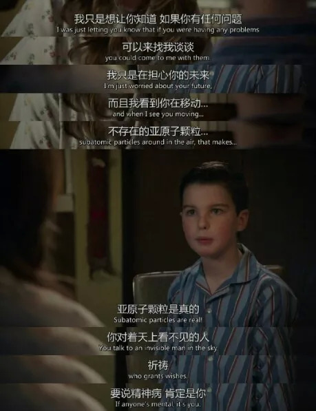 一番沟通下来,小谢尔顿发现妈妈竟然以为他精神有问题。