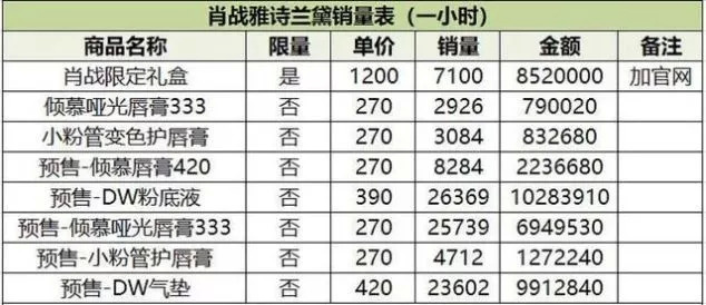 当然钱也算没白花,在双11预售开启1小时内,肖战限定礼盒便卖出852万的销售额,肖战推荐的产品1小时预售额便超过四千万。