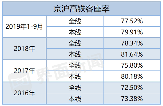 2018年,京沪高铁全线发送旅客1.92亿人次,用全国铁路1%的里程运送了全国5.69%的铁路旅客。根据世界银行统计,中程距离的高铁年客流在3500万-4000万就可以实现盈利。