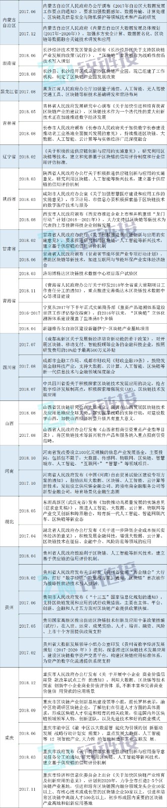 从2016年开始,中央和地方级政府陆续出台关于区块链的各项政策,包含技术层、产业层、行业应用层,为区块链技术和产业发展营造了良好的政策环境。
