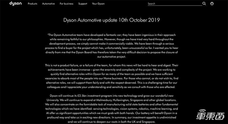 但依旧没人愿意出价,戴森公司最终没有与任何人达成真正有意义的交易。9月下旬,詹姆斯·戴森做出了关键性的决定,宣布放弃汽车项目。