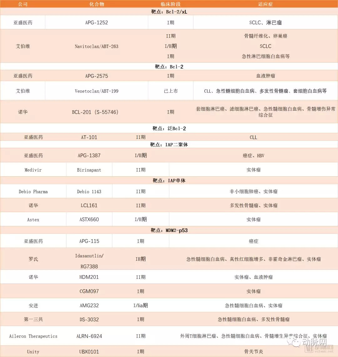 全球范围内在研和已上市的细胞凋亡路径药物清单