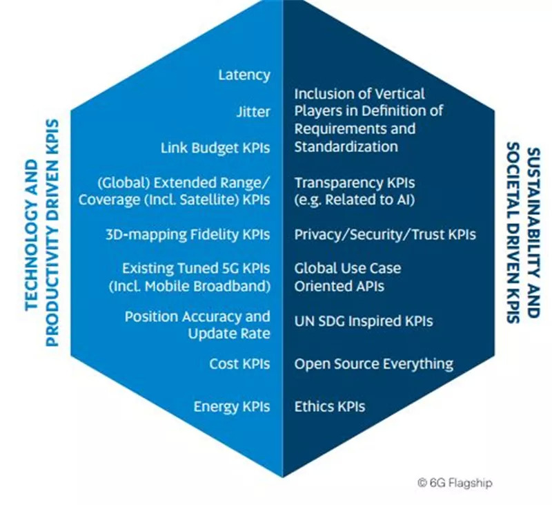 下图中列出了一些潜在的6G KPI,包括先前讨论的技术KPI。