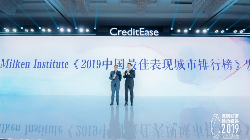 (图:米尔肯研究院《2019中国最佳表现城市排行榜》在宜信财富传承峰会发布)