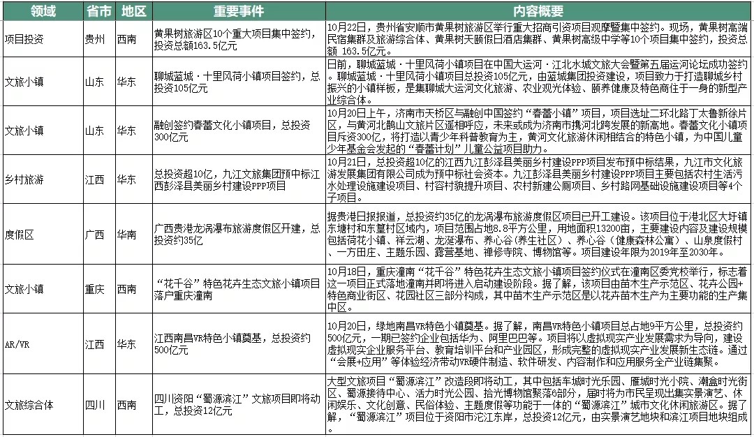 本周文旅项目签约开工颇多,集中于华东、西南、华南和华中等区域。