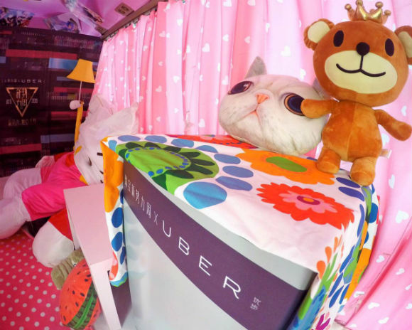 此外,淘宝还在新势力周期间联合了打车软件Uber,在广州、成都、杭州等城市推出“移动试衣间”。消费者有机会通过Uber叫到一辆“新势力周试衣专车”,专车内将由神秘设计师、时尚博主一对一帮助用户试衣搭配。来看看这些画风很少女心的试衣间。