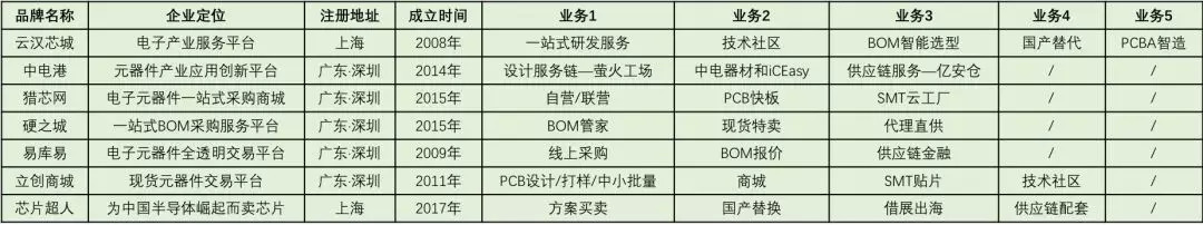 如果我们以国内一级市场中部分电子元器件B2B企业为例,进行功能罗列,发现这批具有流通/分销性质的“中间商”提供给客户与供应商的不仅仅是产品寻源与连接,更包括了一系列增值服务:BOM成本分析、技术支持、物流服务、替代短缺元器件寻找服务、借展出海服务等等。