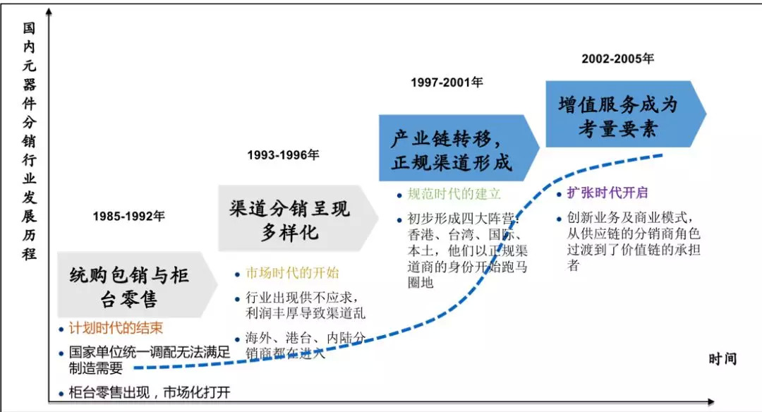 至此,也标志着我国电子元器件分销行业开始从国家计划走向了市场化。