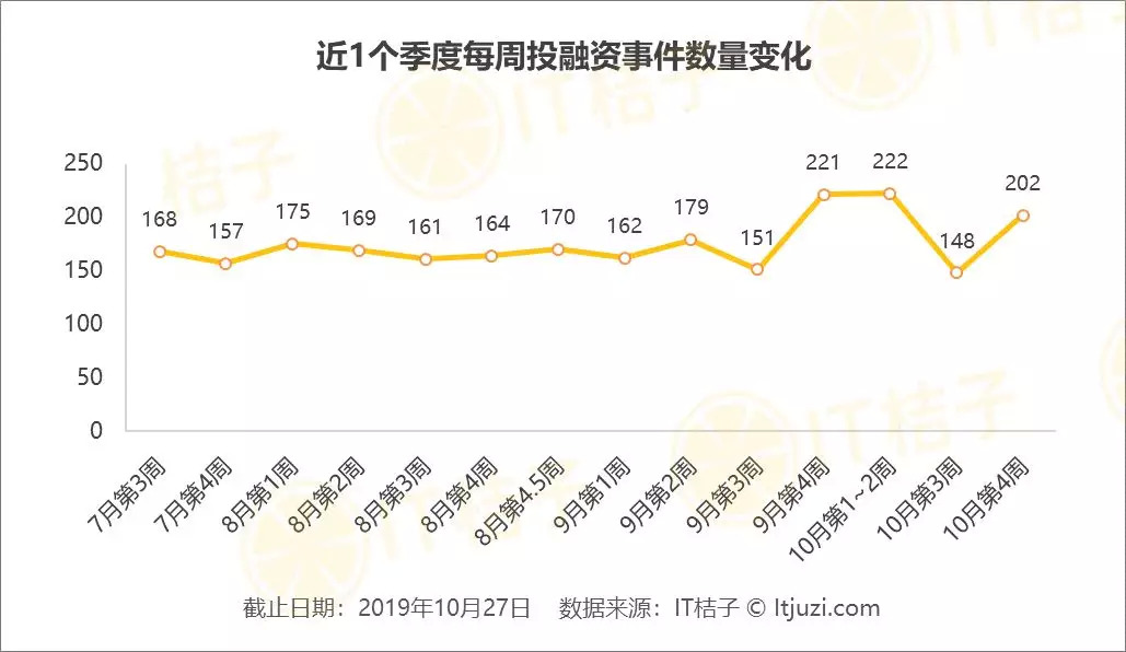 10 月中下旬的投融资市场日渐活跃,经历一个低谷后,上周又有大幅回升,根据 IT 桔子统计,上周融资并购交易共发生 202 笔,国内融资 1 亿元以上的有 15 笔,其中超10 亿元人民币的有 1 笔,发生在文娱领域,交易金额达到了 23 亿元。