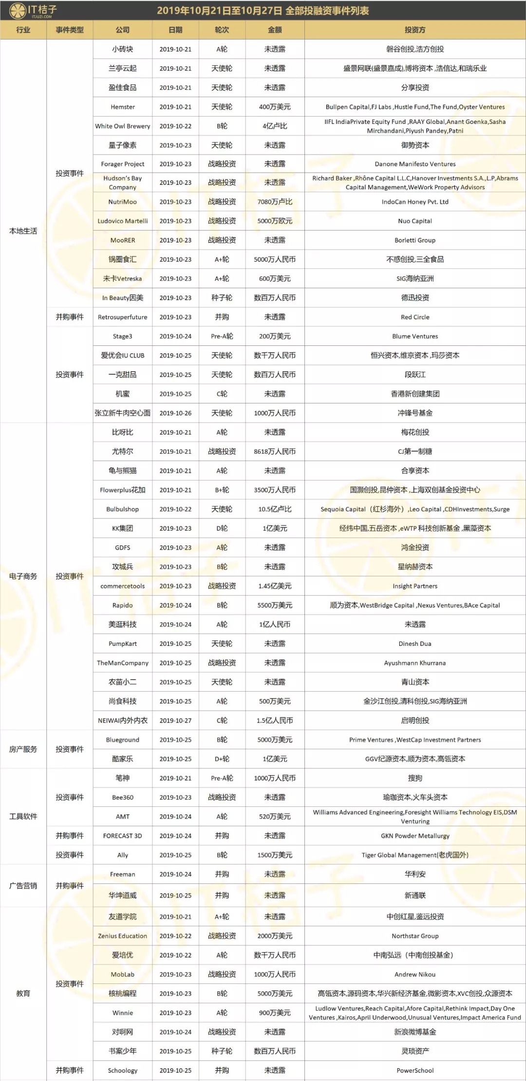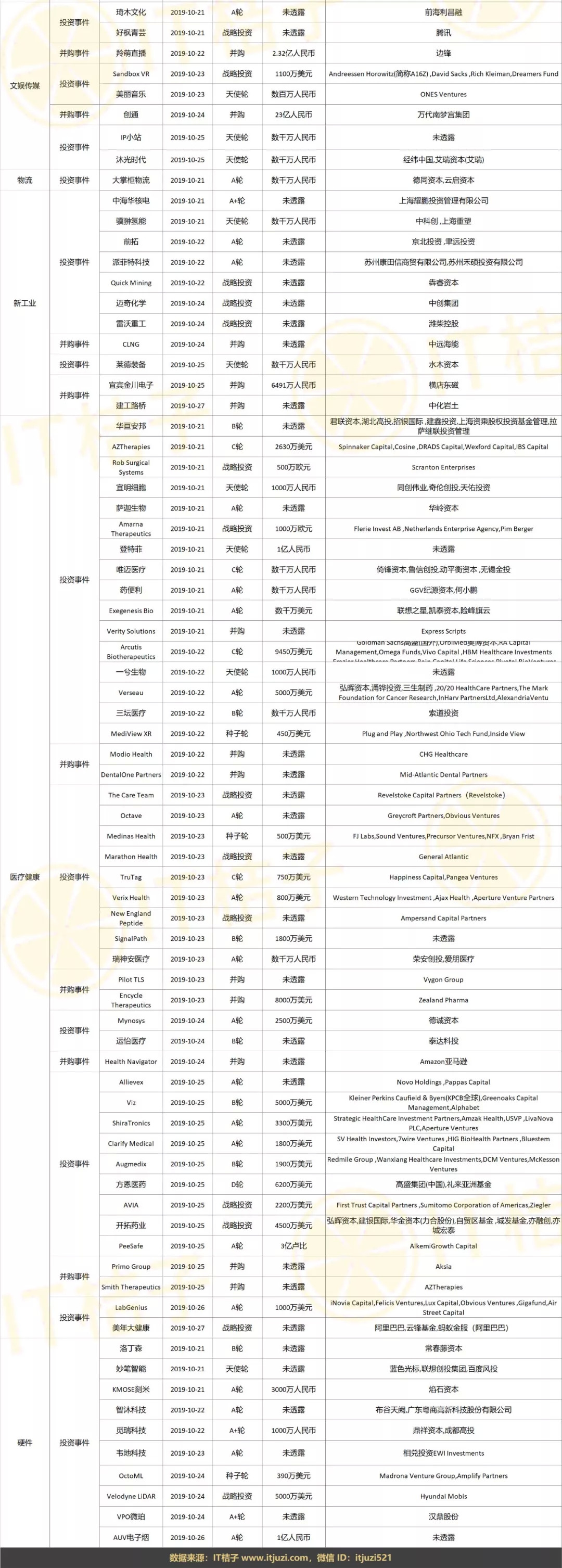 上周全部投融资事件列表: