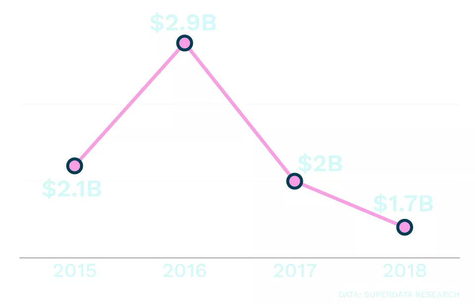 《英雄联盟》在2015~2018年的收入变化(数据来源:SuperData)