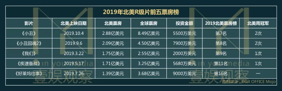 在2019年R级片为低迷的北美市场多次掀起观影小高潮。