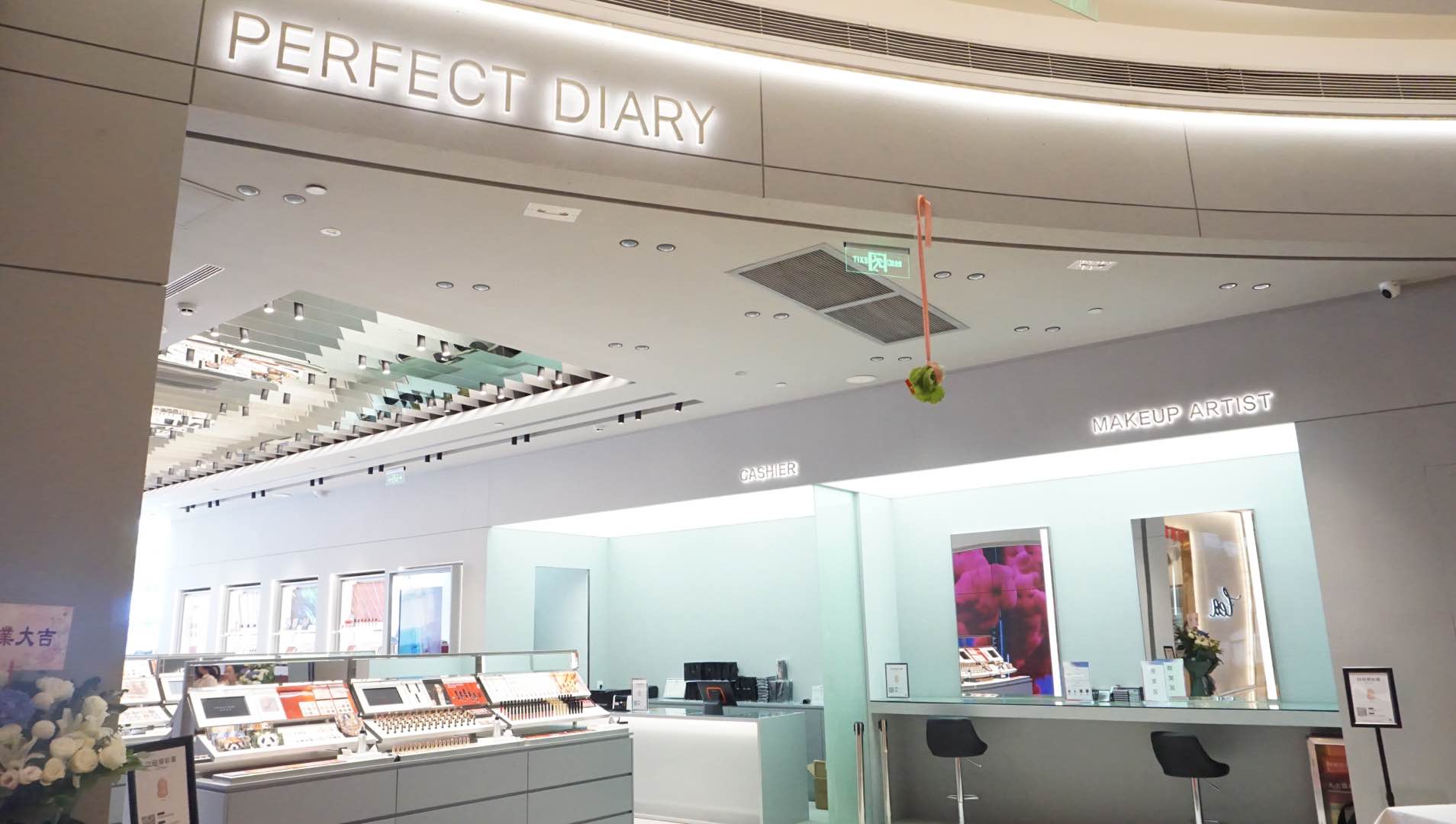 目前完美日记既在广州、深圳、成都等一二线城市铺设了线下门店,也在江门和普宁这样的三线城市开设了实体门店。