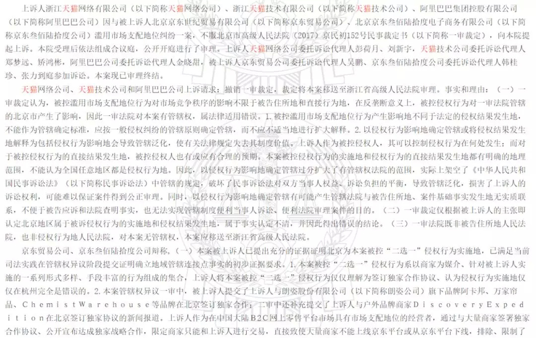 对于阿里巴巴“二选一”,京东曾于2015年起诉,目前该案件仍未完结。